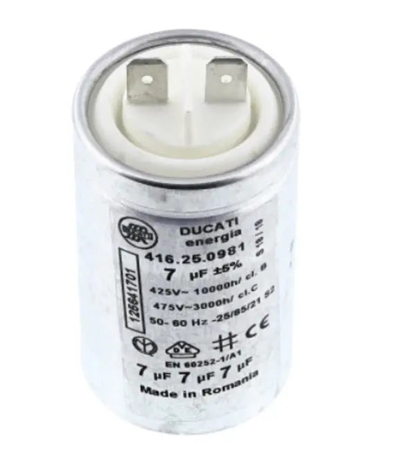 Note:Condensatore per motori custodia metallica S2 - 7MF 475V faston semplice attacco rapido dim. 35X60 mm