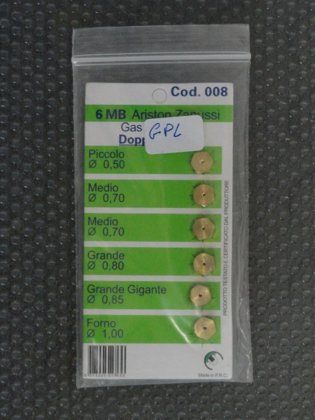 UGELLI 6MB GPL ARISTON MEDIO DOPPIO E FORNO MERLONI ARISTON - zanussi Specifiche tecniche: Kit 6 pezzi con 2 medi Diametro mm. 6 MB Tipo Gas GPL